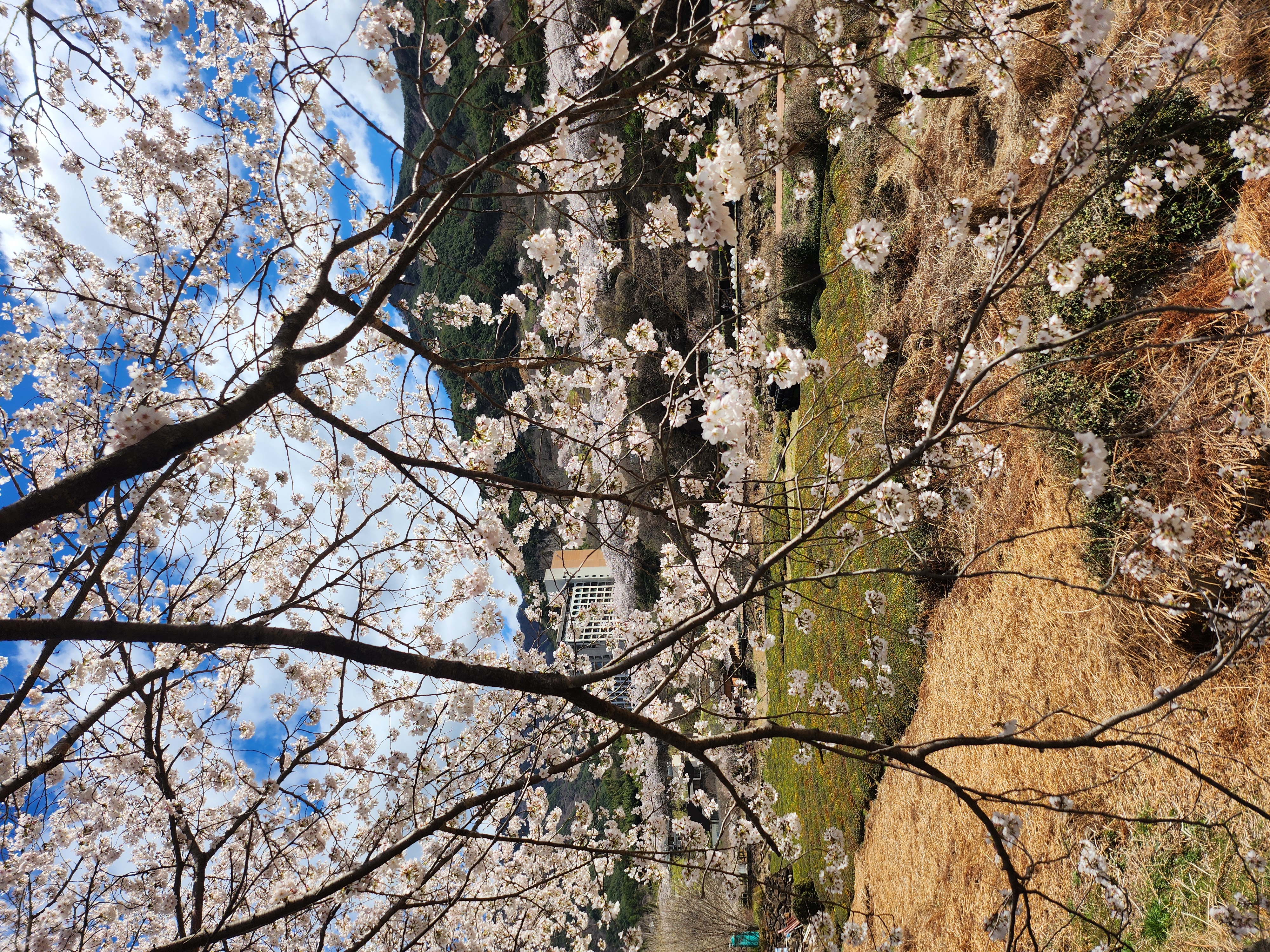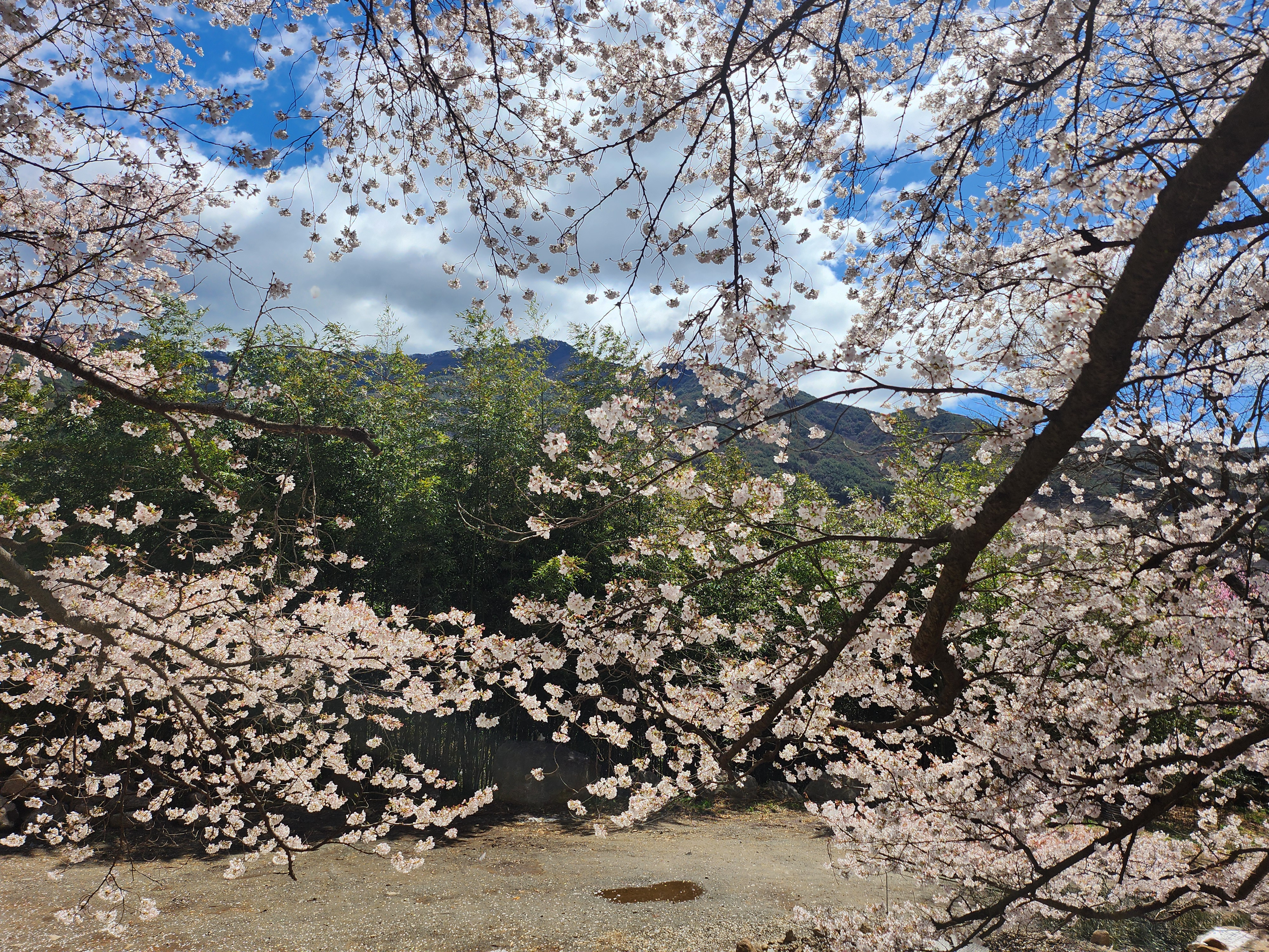 만개한 벚꽃과 맑은 하늘이