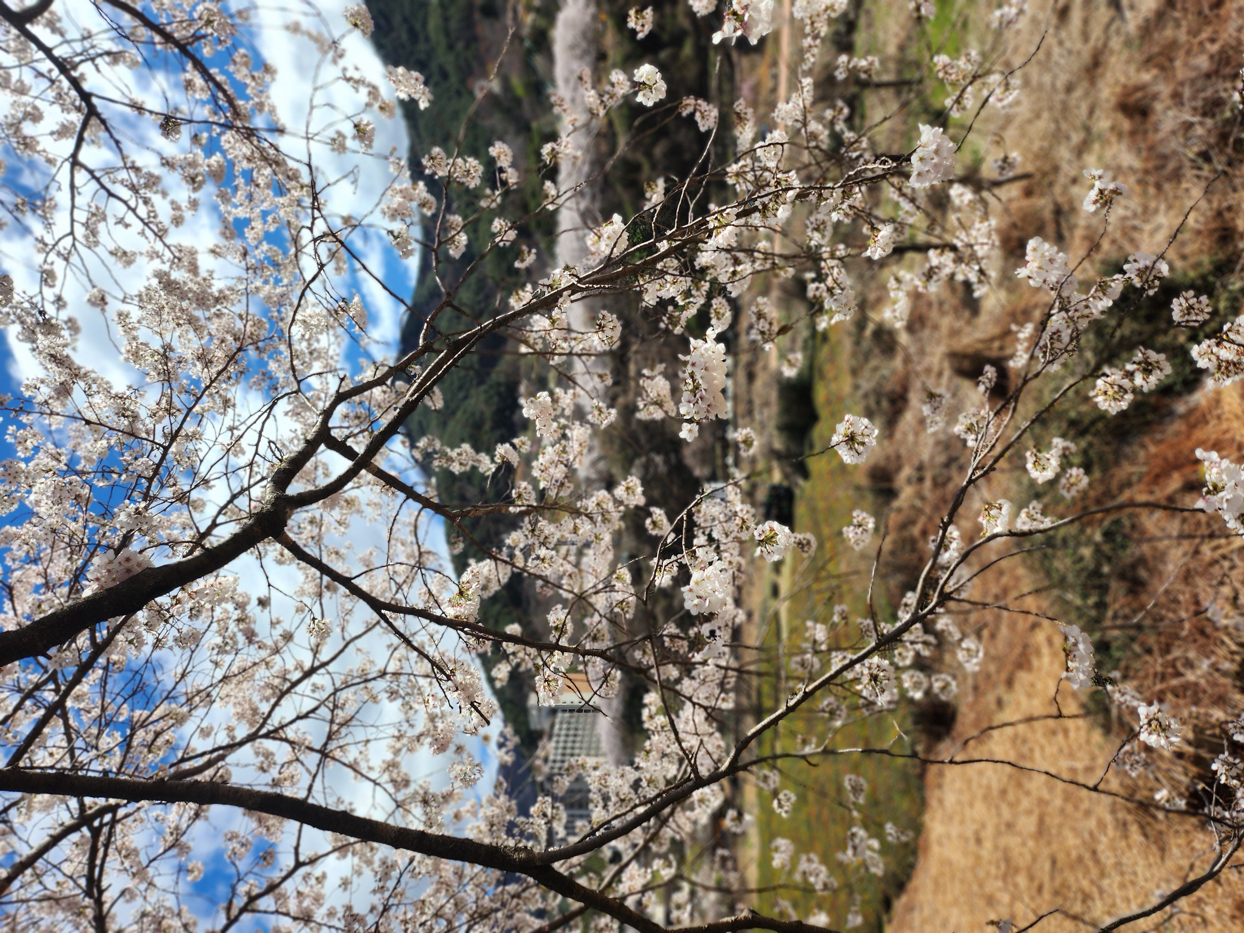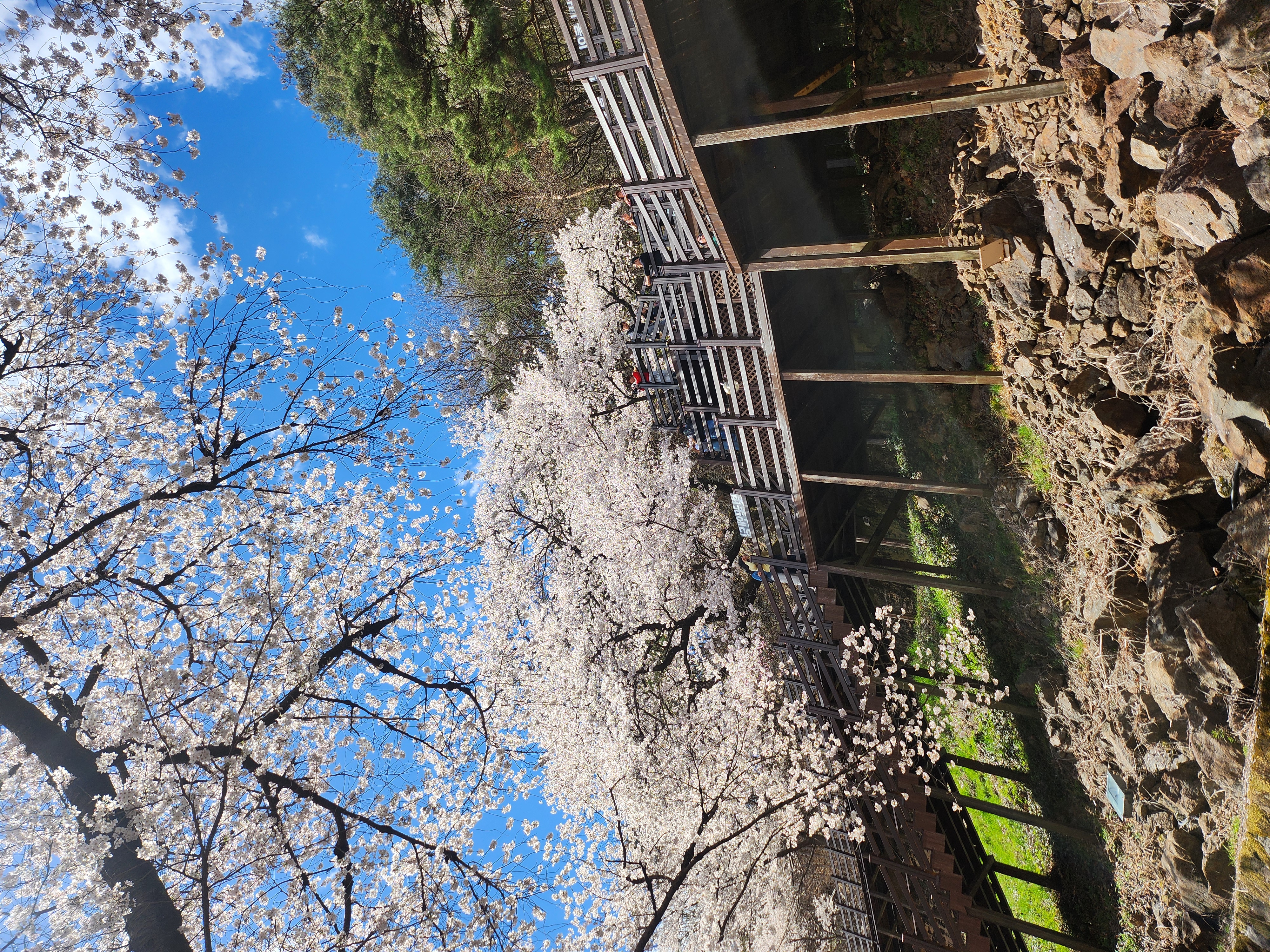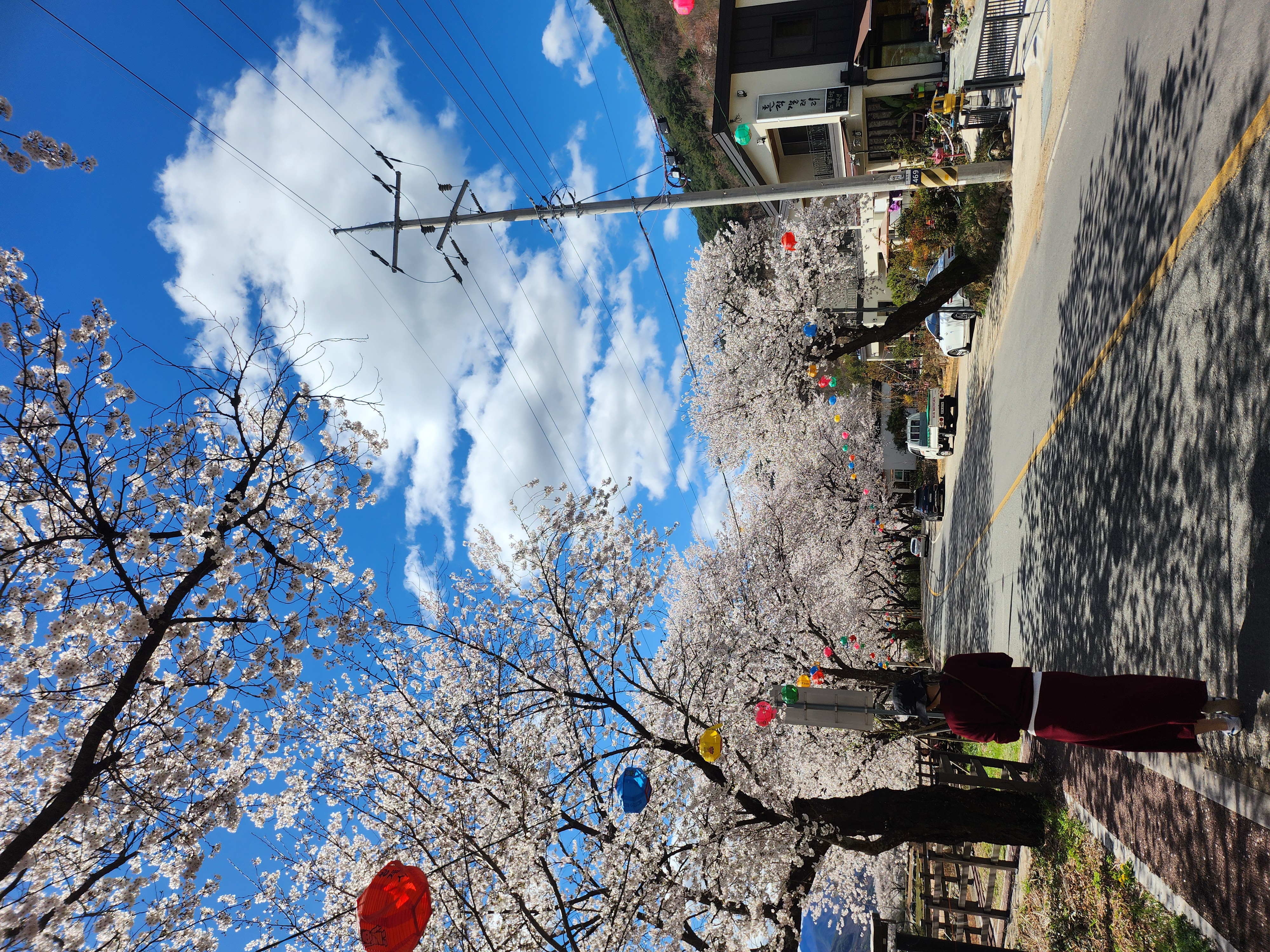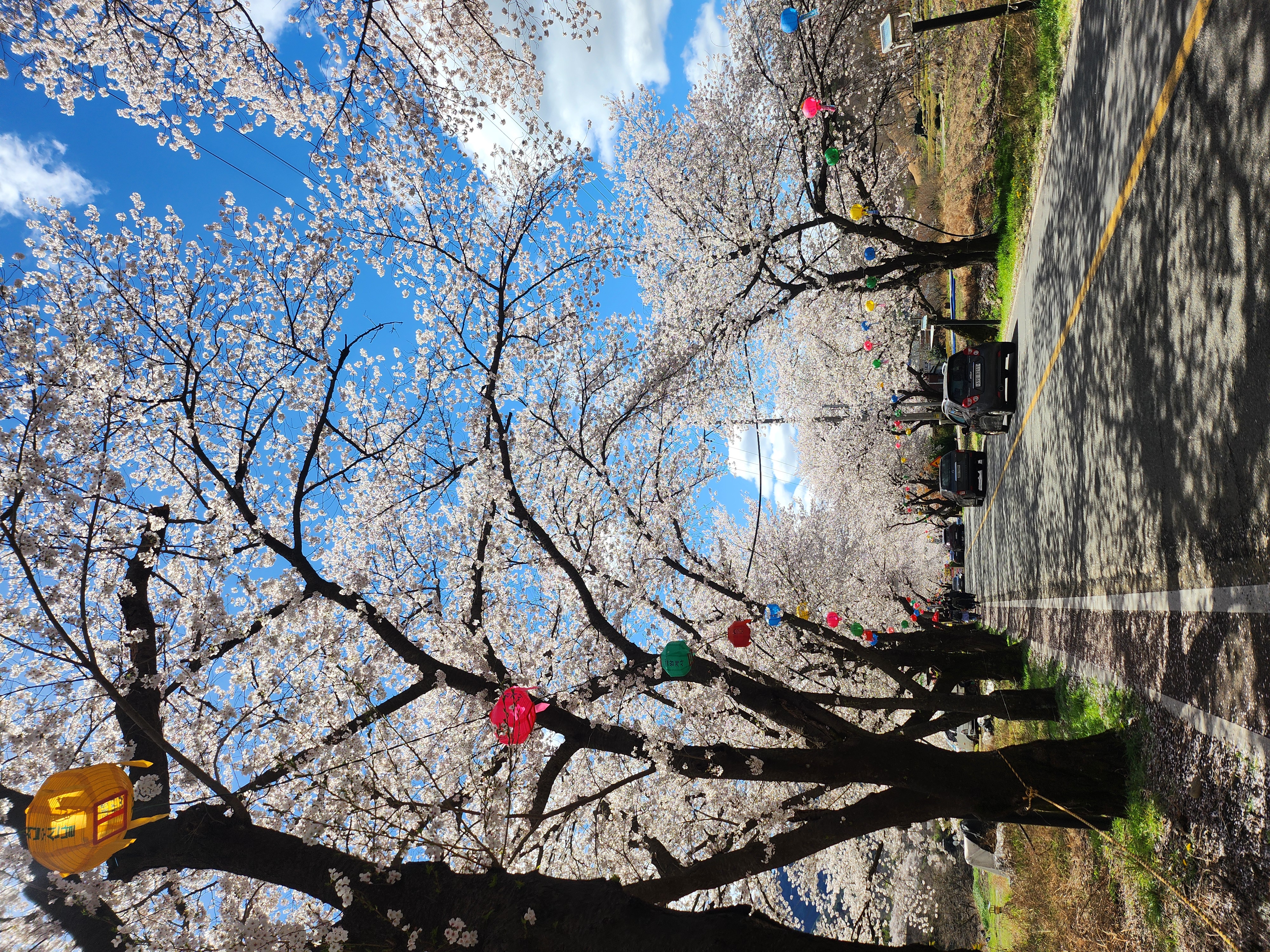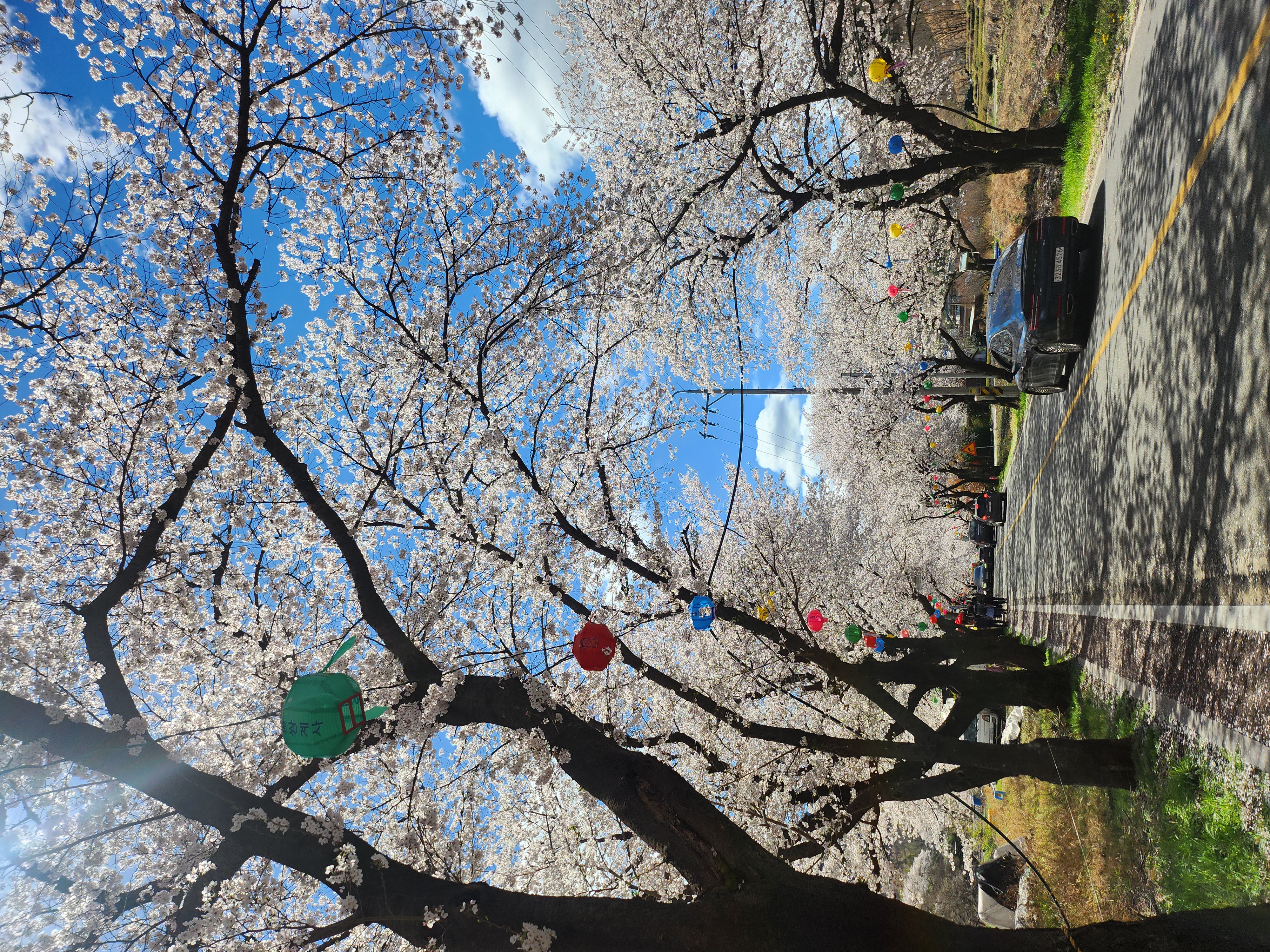 벚꽃나무들이 이어진 길 아래,