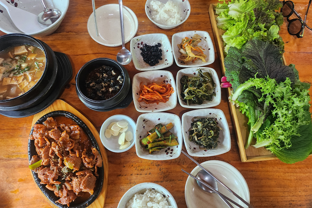 : 신선한 쌈과 맛깔나는 제육볶음으로 든든하게 🍚