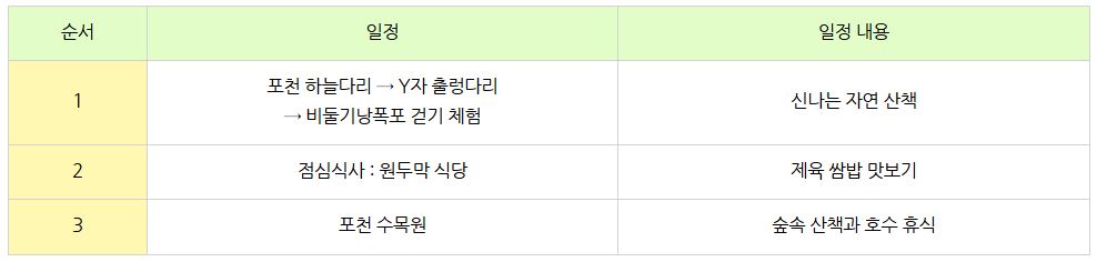 1. 포천 하늘다리 → Y자 출렁다리 → 비둘기낭폭포 걷기 체험 - 신나는 자연 산책
