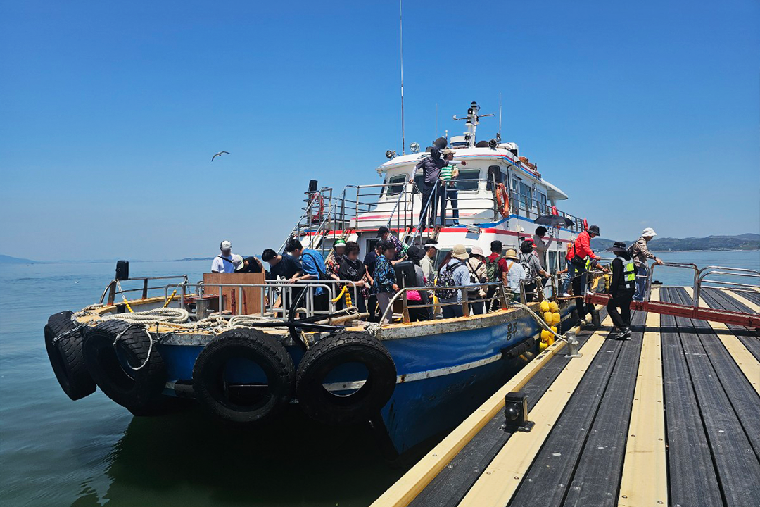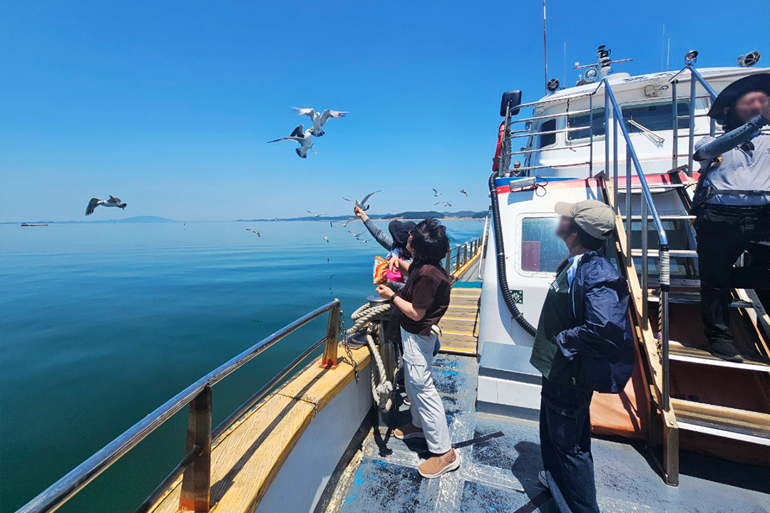 점심 후에는 배를 타고 ‘죽도’로 이동했어요. 🚤