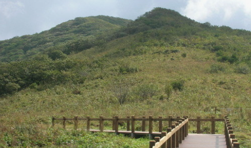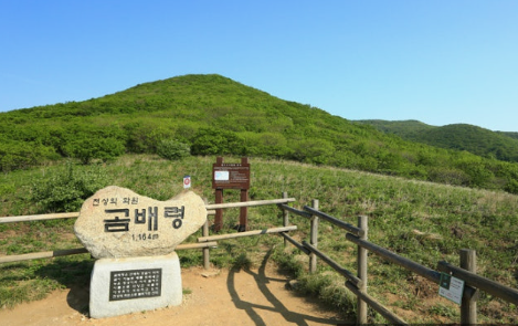 정상부는 완전한 봉우리가 아니라 완만한 능선 초지 형태로,